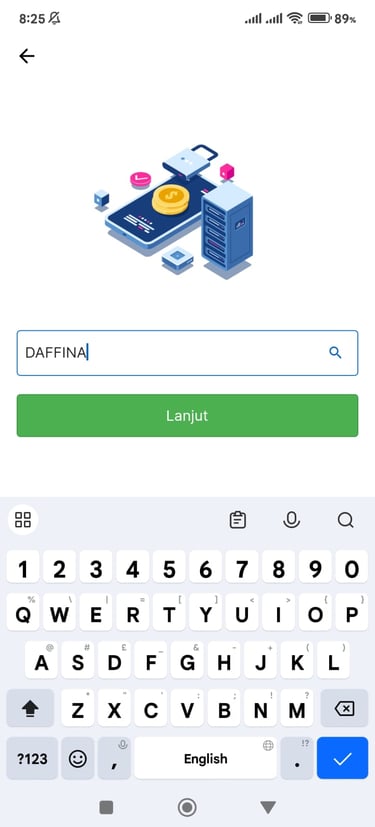 Ketik : DAFFINA pada kolom yang tersedia, kemudian klik Lanjut