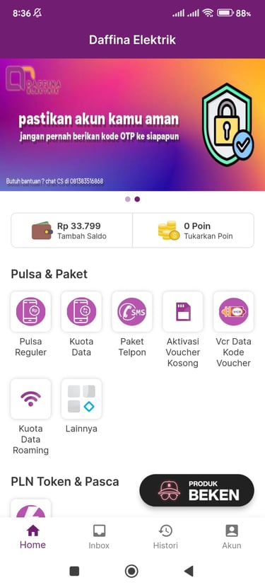 Daffina Elektrik adalah penyedia layanan isi ulang pulsa, kuota internet, dan PPOB terbaik untuk usaha Anda.