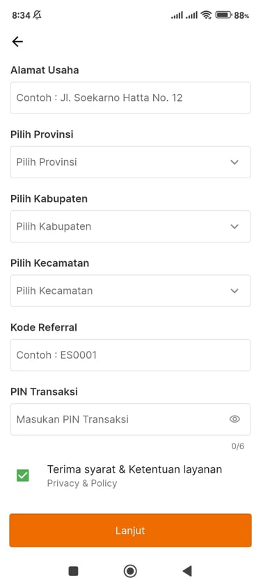 Registrasi selesai, dan Aplikasi Daffina Elektrik siap untuk digunakan